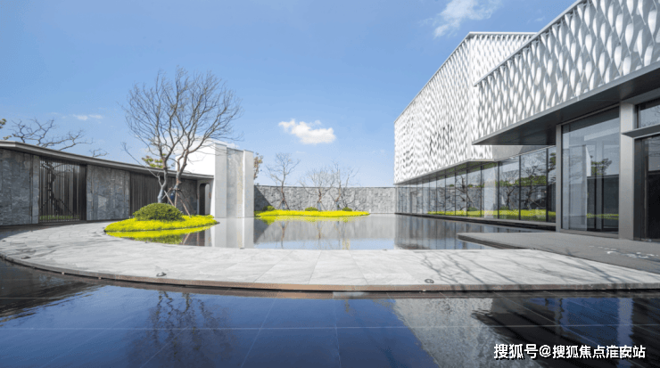 1、化繁为简、奢制现代风尚:外立面提取抽象的“山墙”符号,实现苏式元素与现代设计手法的完美结合,并采用金属漆一体板,配以高级灰高质感色彩。