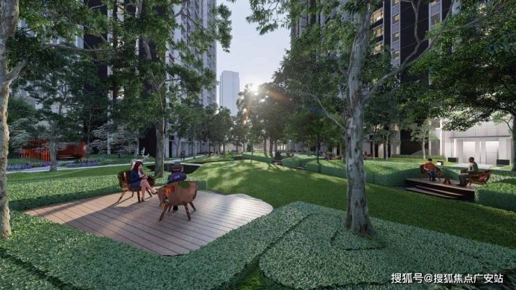 在活动大草坪上互动,其中有专属儿童乐园,景观中还保留了一些休闲平台和户外凉亭可供家长看护孩子,打造住宅花园城市中的平静绿洲,塑造与大自然的互动体验。
