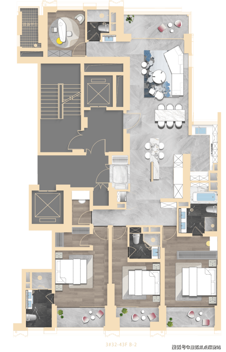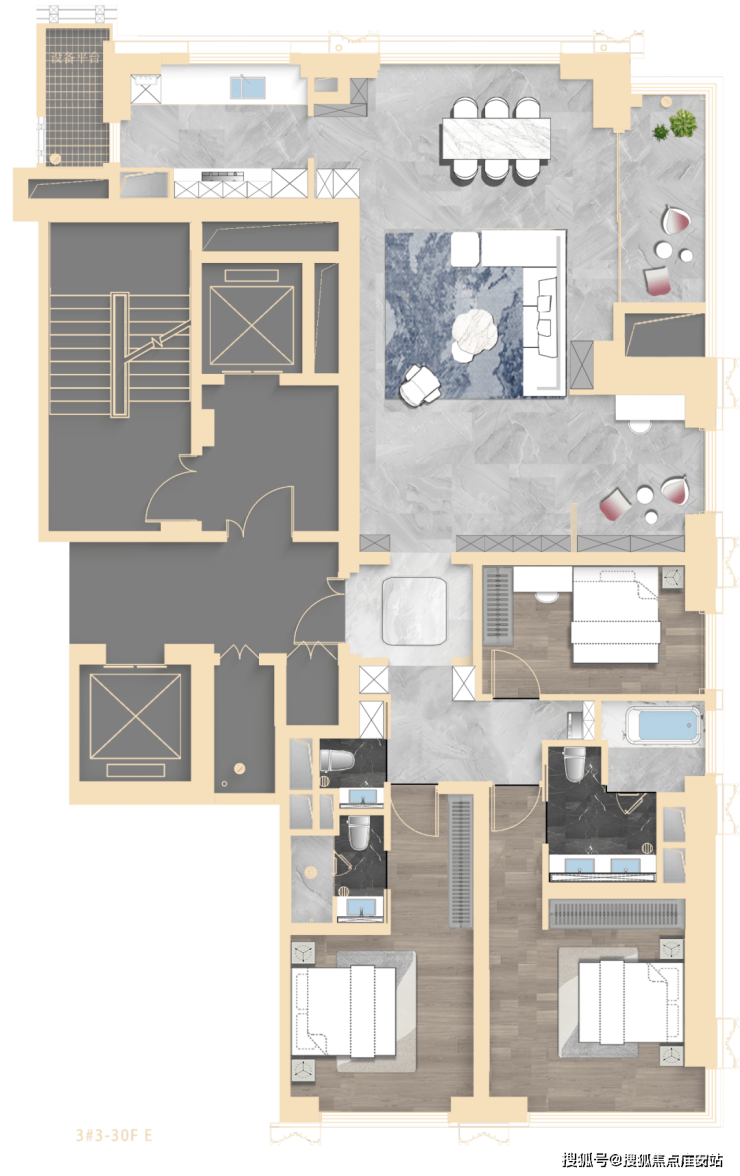 建面约193、237㎡为类一梯一户设计,拥独立门厅;建面约303㎡ 标配2梯1户、私享梯厅,纯粹的大平层圈层!