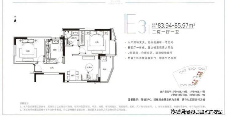 建面约78-91.22平米的小户型,两房两厅一卫的格局,非常适合年轻刚需家庭上车。