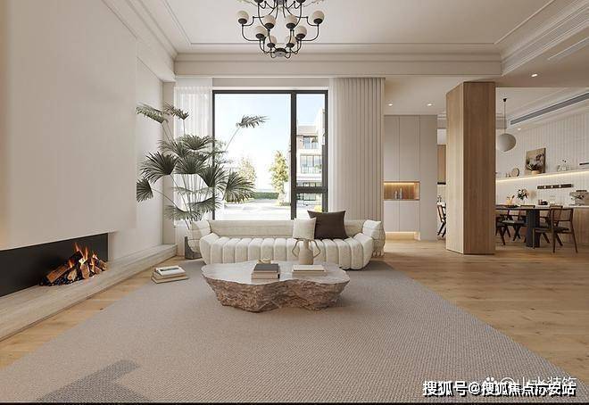 无需过多装饰,悬浮外观与艺术涂料赋予背景墙以高级质感。光线由落地窗入内,在素壁之上绘就生活画卷。日升日落间,不停变换的光影里,藏着家的时光密码。壁炉内的火焰是跳跃的精灵,打破黑夜的沉寂,微光赋予整个空间以独特的氛围魅力。