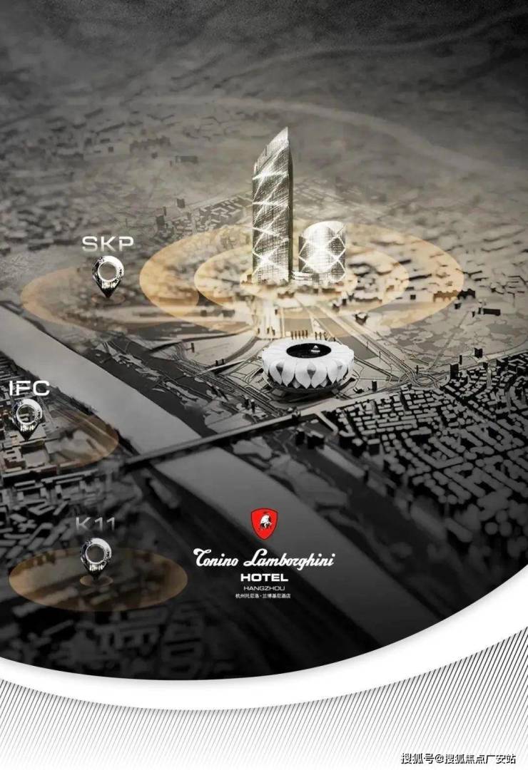 是杭州之门后,奥体落成的海拔第二高双塔(约250米),外号“小杭州之门”。瑰郦中心L-VILLA位于T2塔楼,12层的裙楼就是托尼洛·兰博基尼酒店。