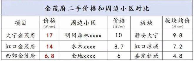 不仅如此,虹口金茂府、西郊金茂府也都是板块内的二手房价天花板!