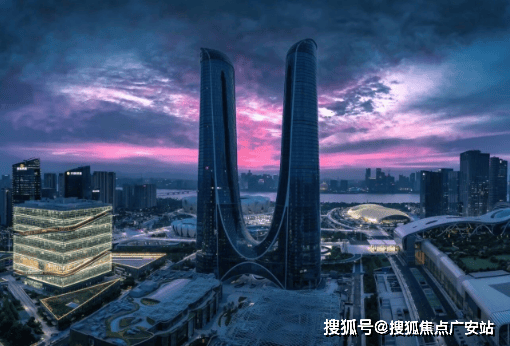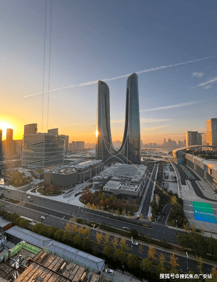 外立面 “丝绸流线”设计,灵感源自杭州织锦文化,玻璃幕墙如裙摆倾泻,夜间灯光极具辨识度