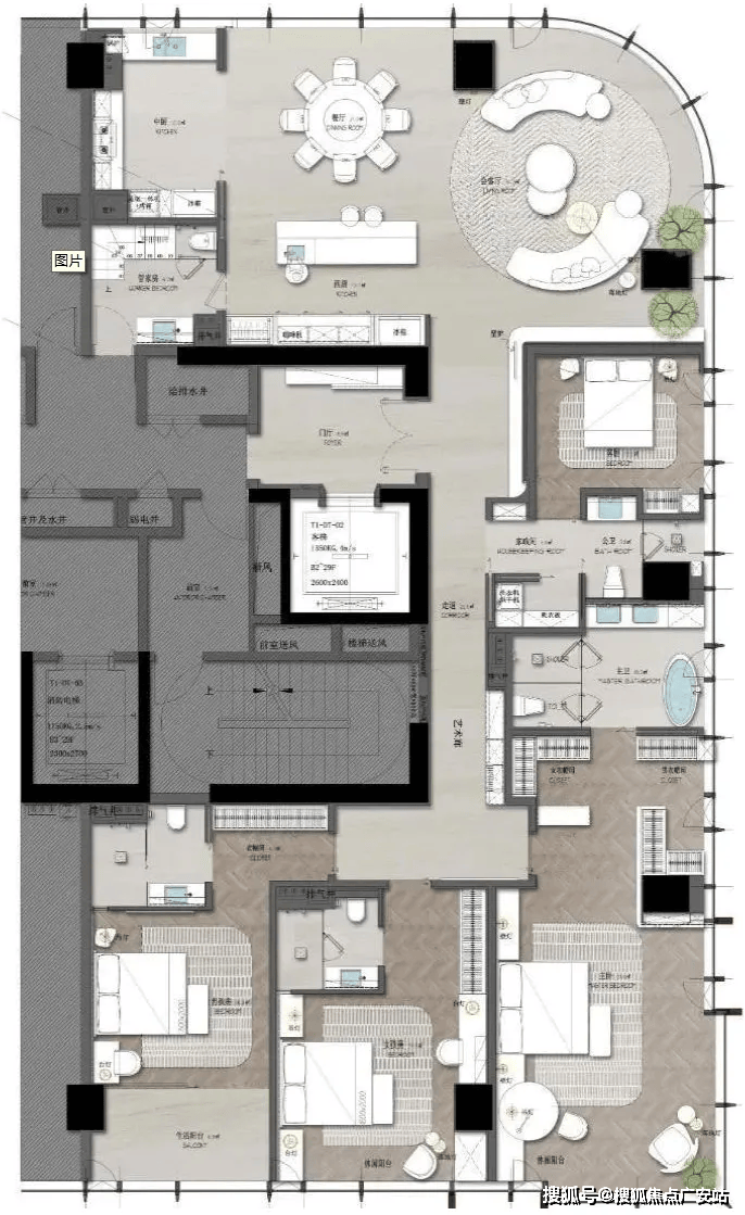 梯户比 1梯1户 + 独立保姆梯,动线分离,私密性达顶配