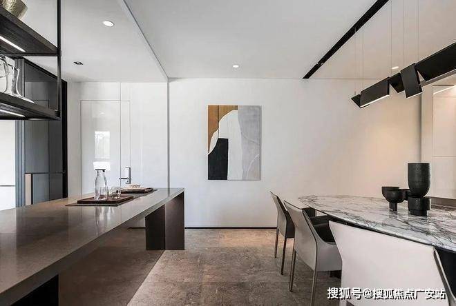 全室采用简约的线条、纯粹的材料、利落的造型等元素,在现代化的住宅中,除了来自于经济层面的批量化需求,更强调纯粹美学。