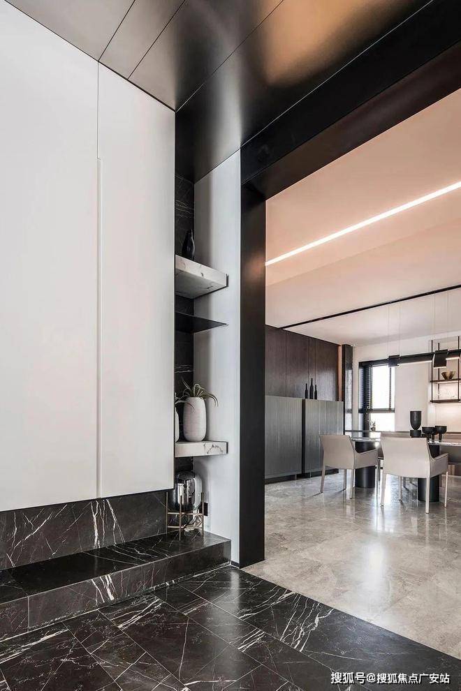 进入玄关即为开放空间,客厅、玄关、走廊、餐厅,最适当的将楼层该有的机能,都缜密的收在这条轴线,合于空间。