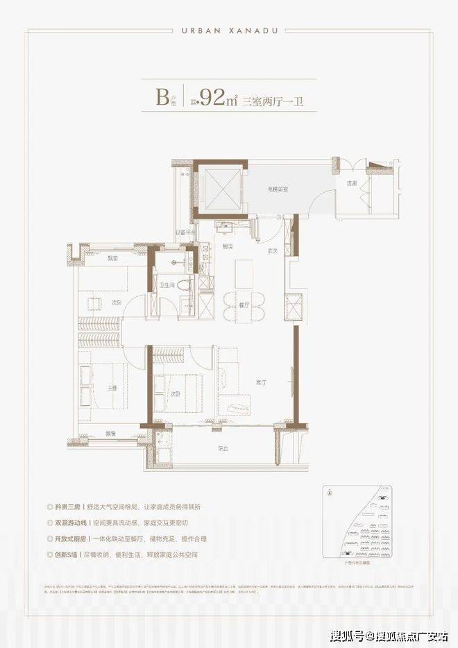 项目主力户型建面约92㎡3房,在青藤里的爆款户型上做了升级,是一个功能性和尺度感完美结合的明星户型。