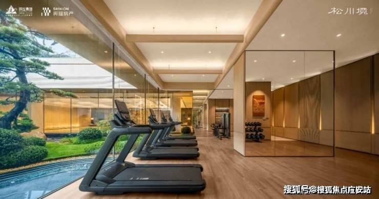 下楼到「松氧馆」健身房慢跑,透过270°全景玻璃幕,心赏「澜庭」下沉式庭院,约7米高溪山流瀑,5棵黑松高低错落,勾画出艺术馆般的静逸场域。松风水雾间,运动不再是「面壁思过」,在沉寂中厘清思绪,迸发万千灵感火花,每一次吐纳都是无尽疗愈。