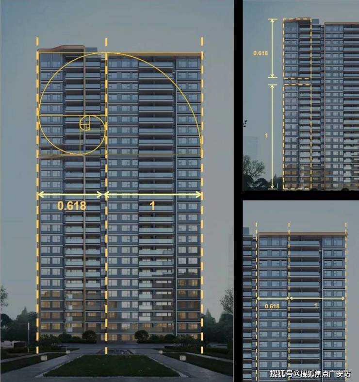 塔楼设计,提取圆润的玉造型和白金的配色。“金镶玉”使建筑立面变得更为柔美,圆弧铝合金转角线条,形态上暗合珠圆玉润的传统美学意韵,代表一种温和雅丽尊贵典雅的审美价值取向。从文化内涵角度,圆弧图形寓意圆融通达,顺遂平安,体现一定的传统文化内涵。立面上中下三段式黄金分割比例,具有严格的比例性、艺术性、和谐性,蕴藏着丰富的美学价值。