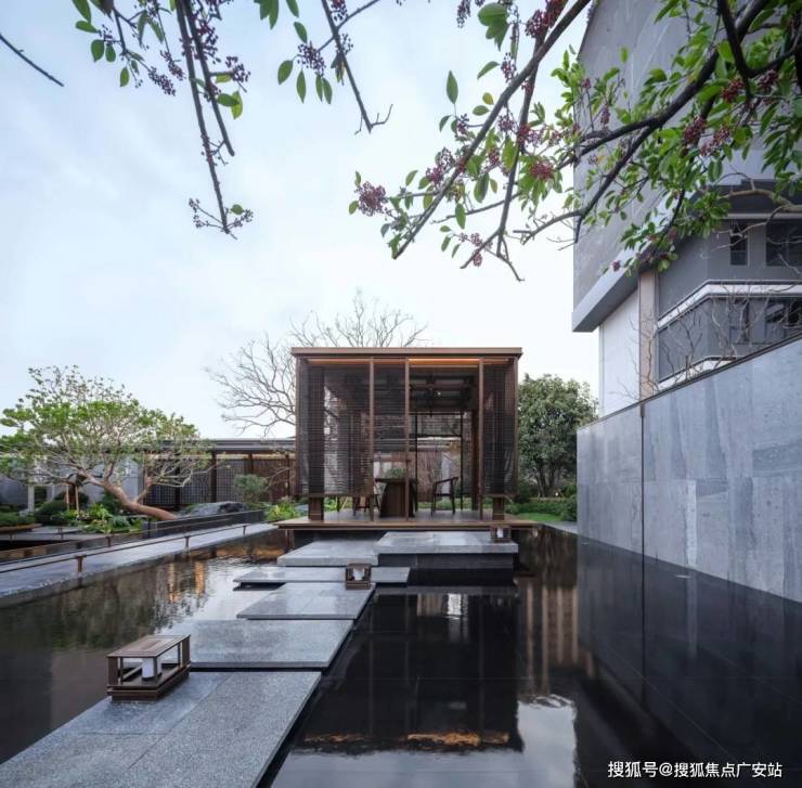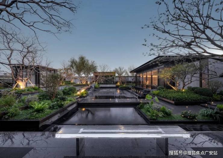海上瑧悦,中水系形态变化丰富,通过200米、近1000平的静水、跌水、涌泉、瀑布等不同的形态诉说传统东方文化水系的不同寓意。复刻“张园”三大水系的二次营造,围绕楼王布置,贯穿入口、启动区庭院、仪式归家轴线、超级引力中心,形成流动灵活的水系。