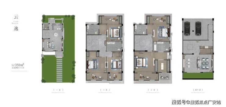 :面积约280-326-355㎡,最大庭院超450㎡,5重奢华套房,总价1100万起!