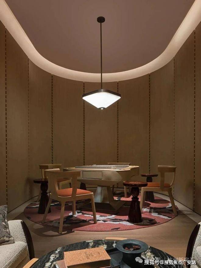 漆砚260㎡户型:户型参考漆砚制作方式,以“玉德”显质地,以“金声”隐赞誉,主卧吊顶还原砚台之形,以漆砚般闪耀琢序空间。