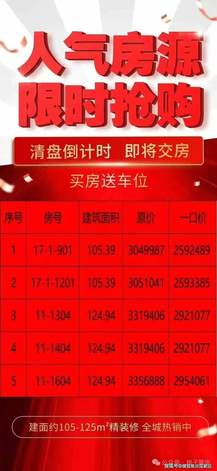 105方85折送车位