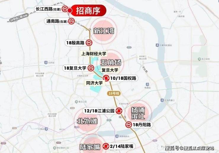 预计今年年底通车的18号线二期含金量太高了。未来从招商序所在的长江西路出发(在建)出发,2站就是新江湾,4站财大,5站复旦,6站五角场,8站新华医院,11站杨浦滨江,12站陆家嘴滨江...并且,每站之间的距离很短,所以实际的通勤效率比想象中要更高。
