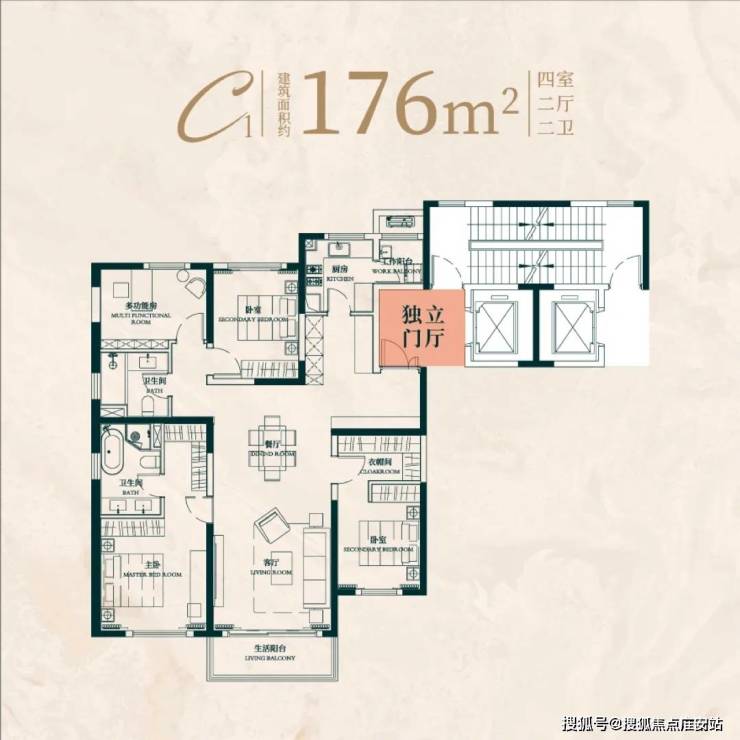 建面约176㎡4房2厅2卫: