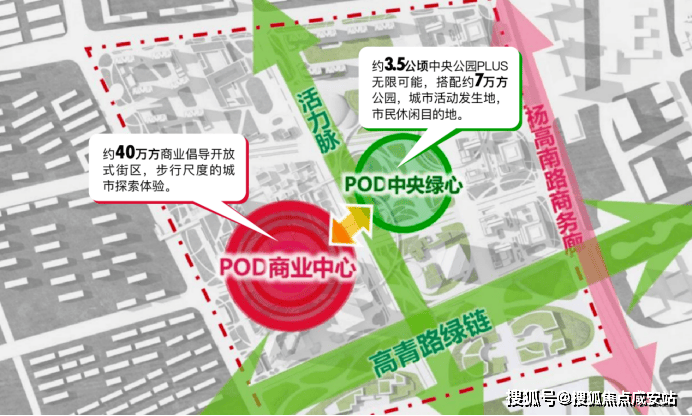同时,新杨思结合上海公园城市的蓝图和定位,极具创新和前瞻性地用双POD模式开发规划。