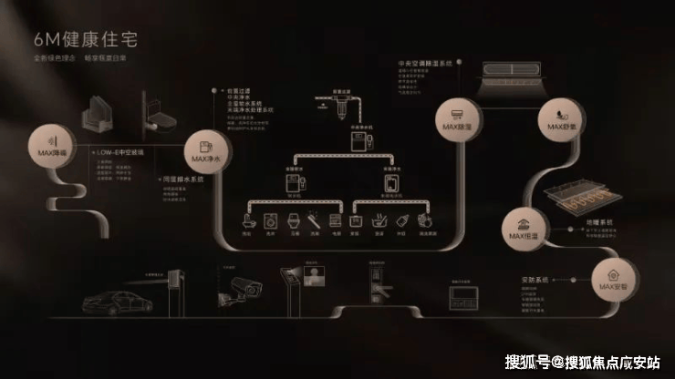 ⑤全屋配置6M健康智能住宅系统,这个智能系统系统涵盖降噪、净水、除湿、恒温、安智等多方面,呼应了好房子政策的全屋智能标准