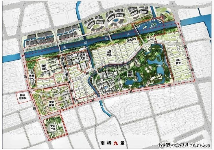 浦南运河两岸的"一川烟雨"滨水秀带,与九棵树艺术中心、上海之鱼等现代地标遥相呼应,一幅古韵新姿的新江南画卷就此展开。