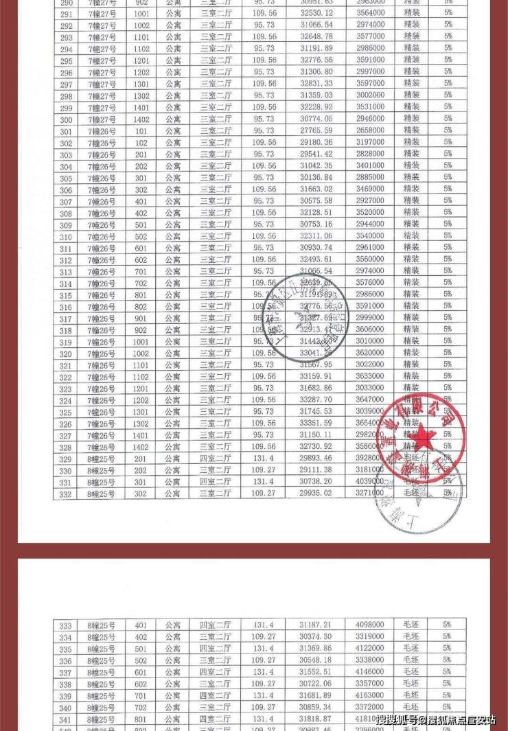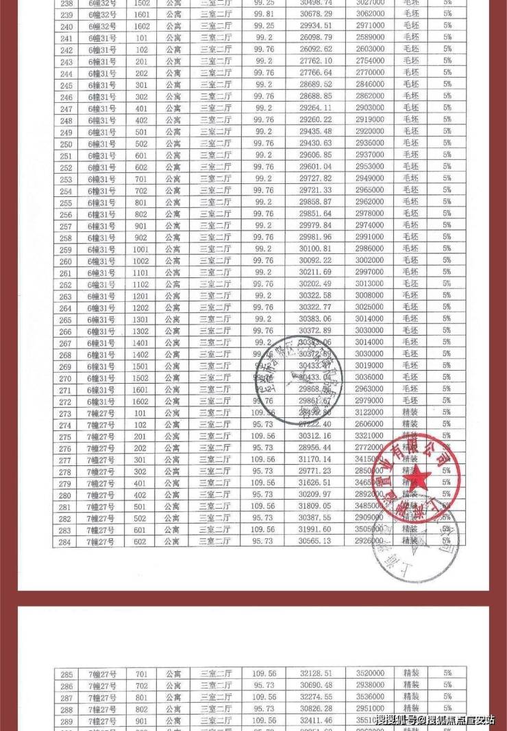 项目一房一价表