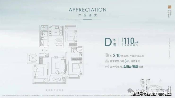 1.全明房型设计,三开间朝南,阳台,三卧室飘窗设计,让自然诗意延伸;