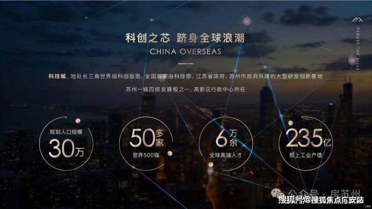 苏州处于产业转型期,从制造业往高端制造、科技创新智慧产业、金融方向转型升级,而科技城就是苏州科技创新的发展级核,金融小镇是科技城科技创新的桥头堡。我们项目就是位于科技城南,金融小镇最核心的生态居住区域。