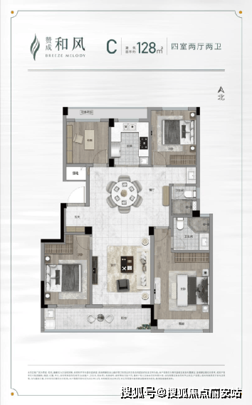 128㎡:4室2厅2卫,约80套(主力),总价约302万起(首付约60万)