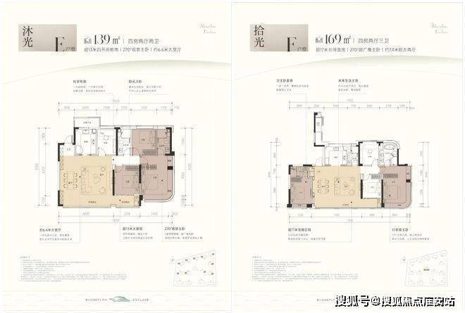 建面约139㎡4房2厅2卫户型为2梯3户的边套户型,分边厅、南厅两种户型;建面约169㎡4房2厅3卫户型为2梯2户的边套户型,该户型仅位于楼王一栋。