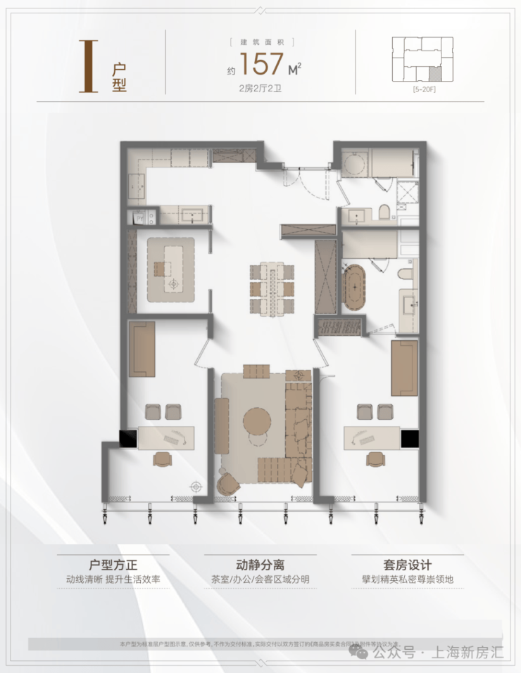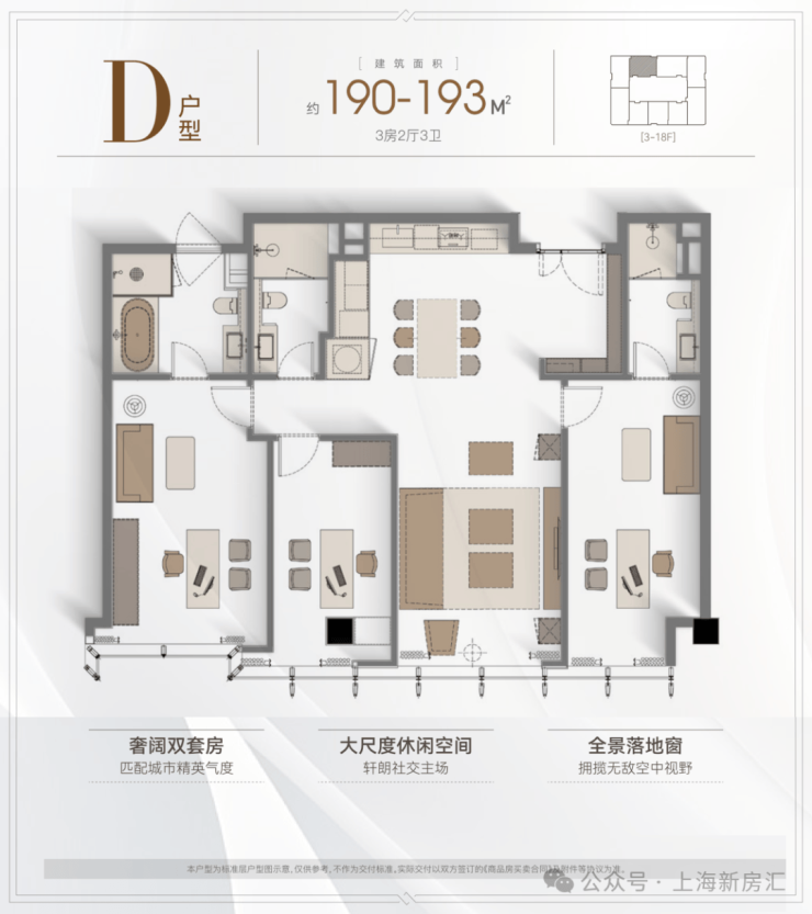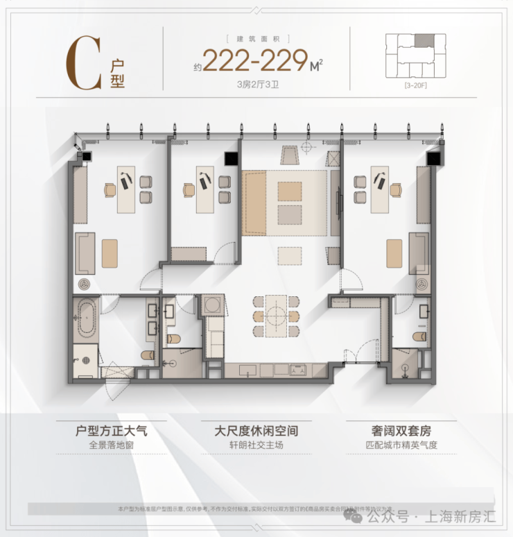 户型:主推建面约157-242㎡的精装大平层,三至四房设计。