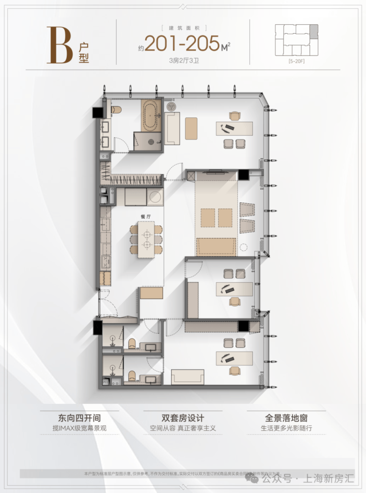 5️⃣户型优势:4.2米层高,全落地窗设计,多套房设计满足三代同堂