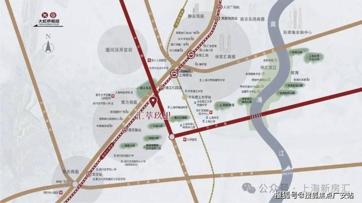 汇萃玖里坐落闵行与徐汇区主城的交界的黄金中环地带,中环上中西路下匝口,虹梅南路与益梅路交汇处、东至虹梅南路(中环高架)、南至北潮港、北至益梅路。