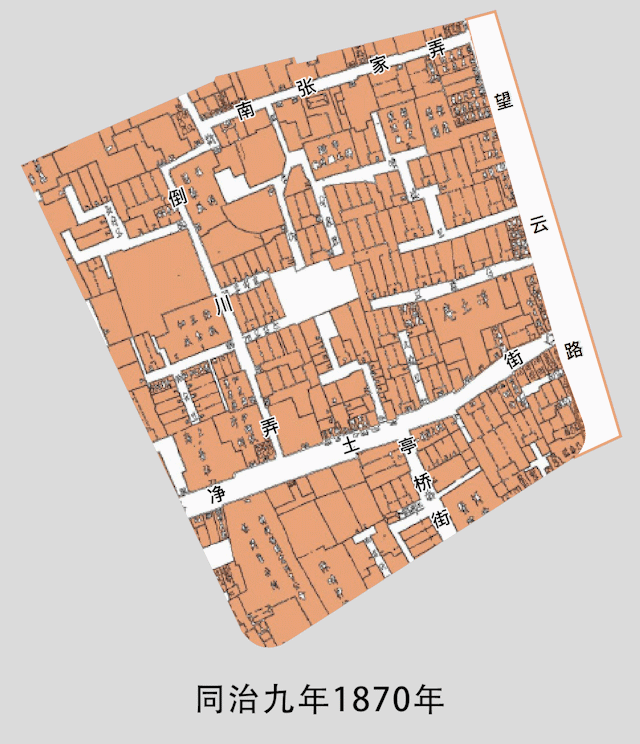 把同治九年(1870)的街景图与 2025 年同角度叠放,一眼就能“看见”复原的过程。净土路、倒川弄、亭桥街等这些传统街巷的名字和模样,被巧妙保留下来。约 1.78 万平方米的历史建筑沿望云路铺展,让上海的历史气息在此愈加醇厚。