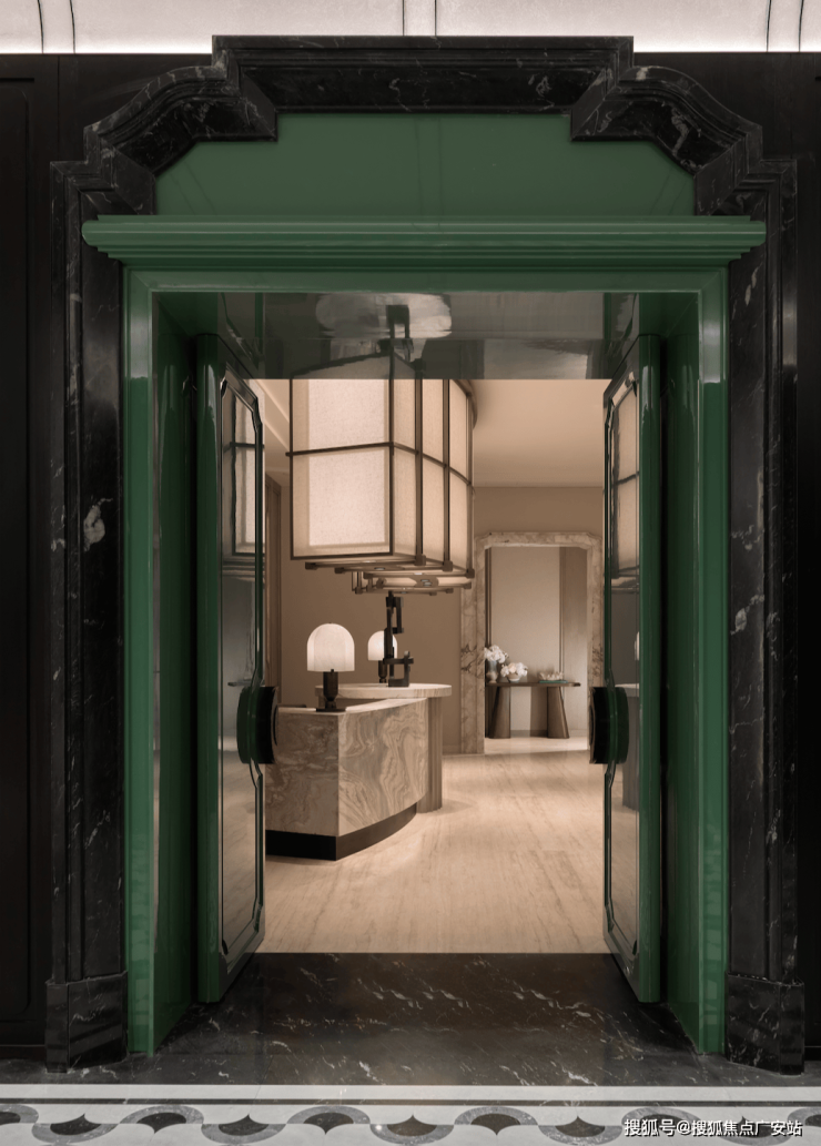 会所也由傅厚民设计,室内通过诸多细节,展示连接过去与现在的对话。例如,特别设计了一条结合石库门拱门元素的通道,让人们在这里就能感受到一段传承的历史记忆。