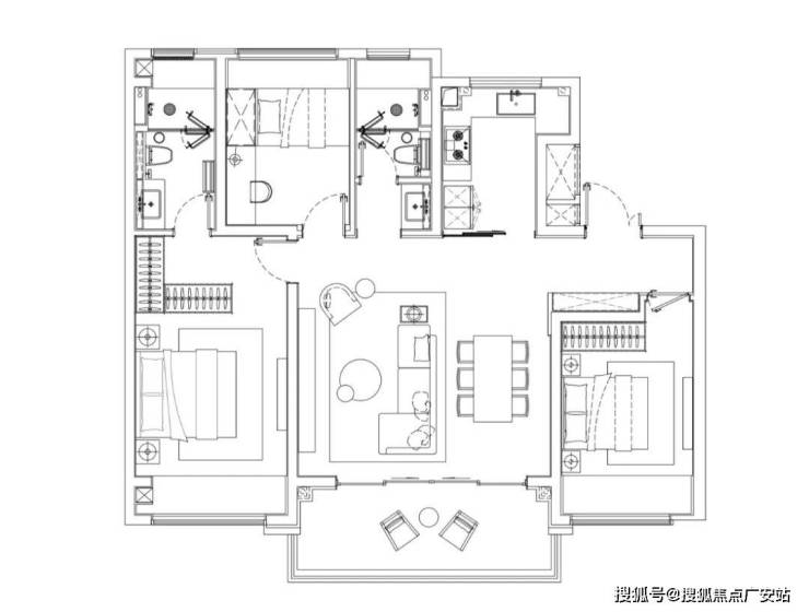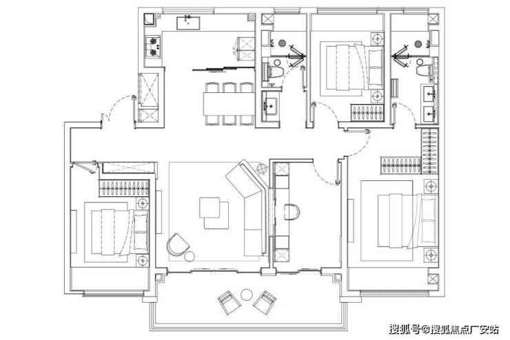 客厅与餐厅以开放式岛台衔接,形成“家庭核心区”。岛台不仅是操作台,更成为家人互动的纽带——备餐时抬头可见窗外景致,阳光与笑声在此交织。