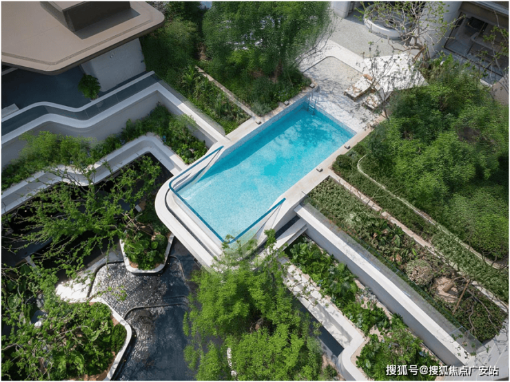 灵感源自新加坡edtion度假酒店的悬挑式戏水池,搭配4.3米飞瀑,创造别具一格的城市绿意的立体浮岛视觉奇观。
