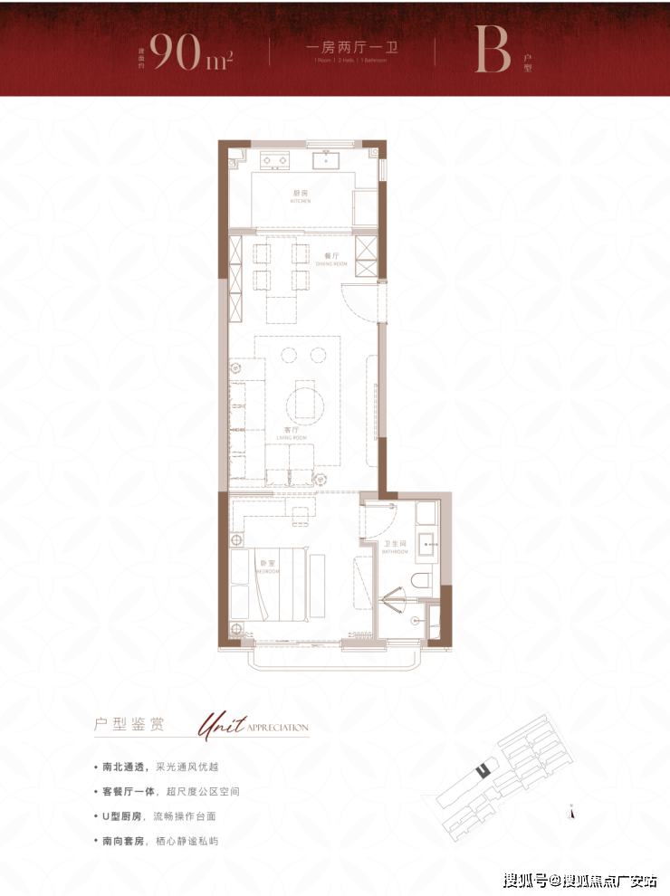 建面约90m²尊享1房户型,在100m²的基础上,进一步降低总价门槛的同时,也带来了设计上针对实用性的小巧思.