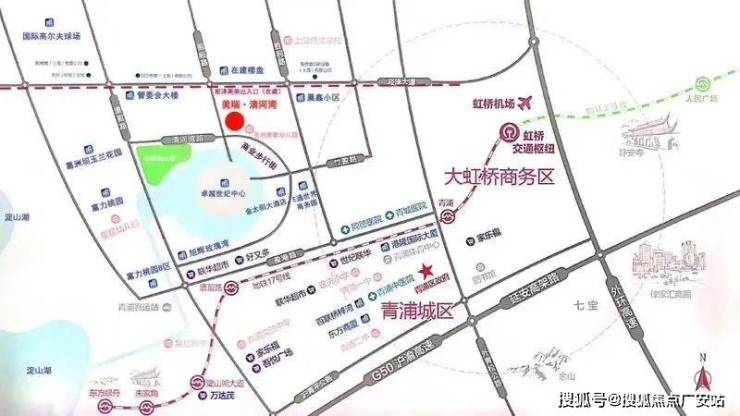 【交通配套】嘉青松金线有轨电车(在建)站台2公里,17号线青浦新城站1.7公里,崧泽高架(在建,2021年底通车)、G50沪渝高速