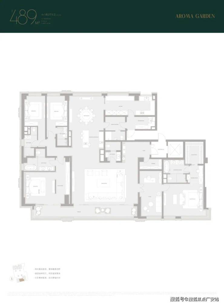 大面宽窄进深让露香园·天誉489㎡的主卧及次卧面宽都超出了同类亿级产品,客厅面宽仅比翠湖天地六和稍窄。