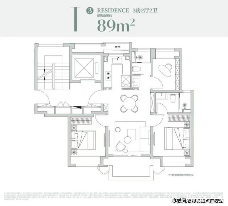 约99㎡户型设计:经典飞机户型格局!独立观景阳台!