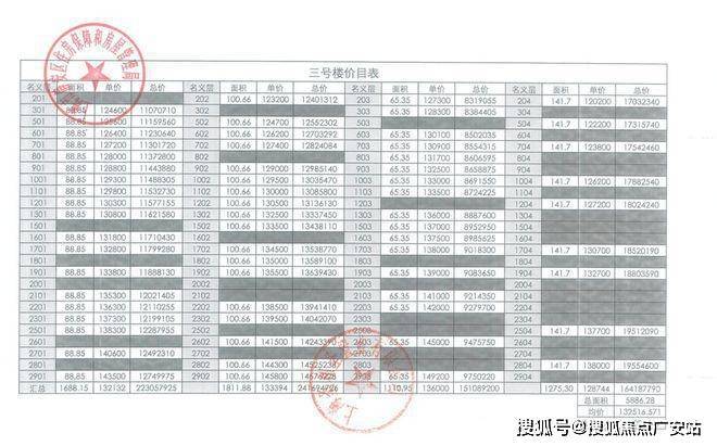 项目一房一价表▼