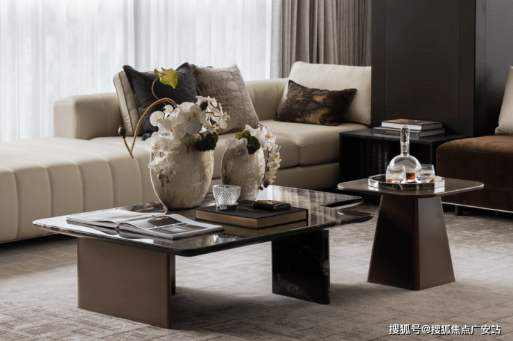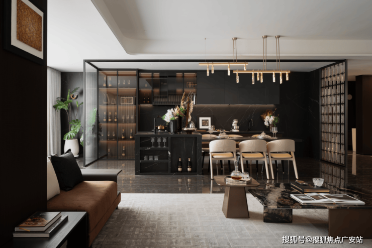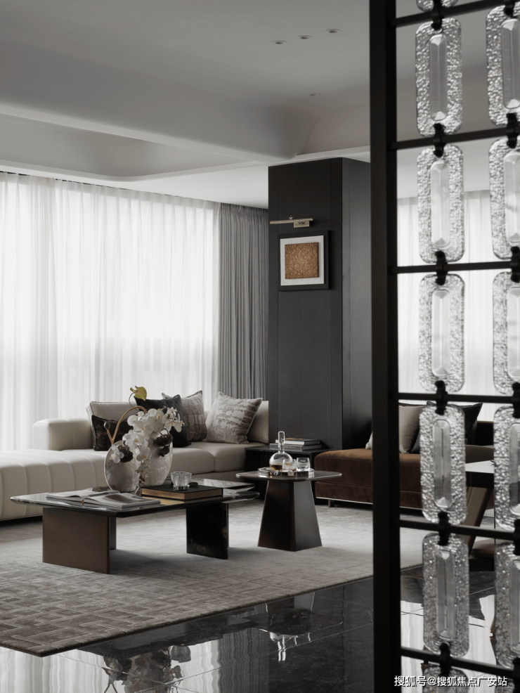 户型设计:双主卧套房、中西双厨,得房率超85%,获日本IDPA国际设计金奖,空间可灵活改造为会客厅或私宴区