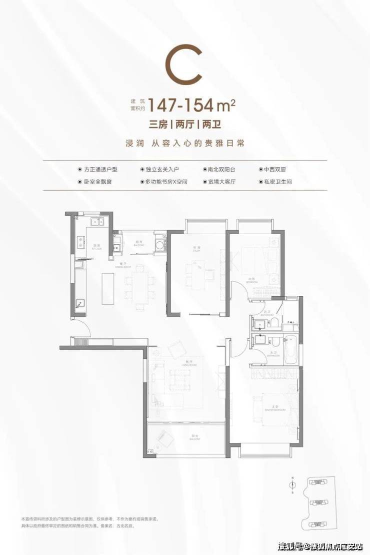 建筑面积约134-154㎡精装3房