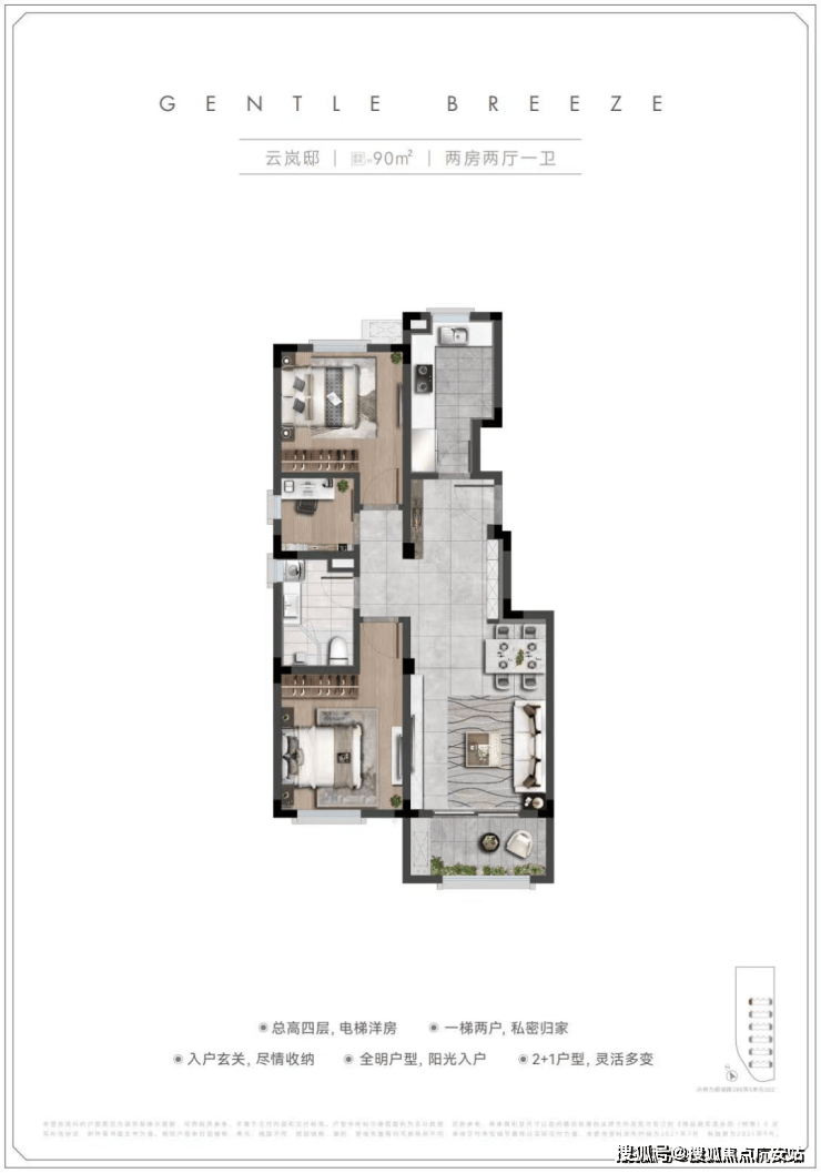 4 层电梯洋房:建面约80-90㎡ 2 房,精装交付,均价约 2.79 万 /㎡