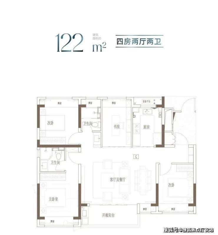121㎡ 四房两厅两卫(高层):530 万起,餐客厅一体、全明格局