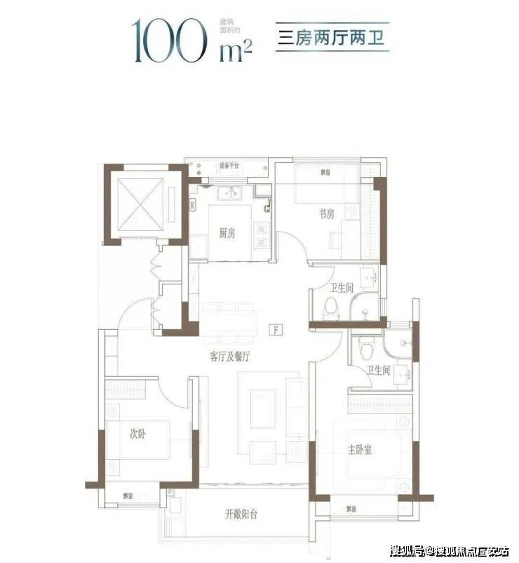 100㎡ 三房两厅两卫(高层):420 万起,飞机户型、主卧套房