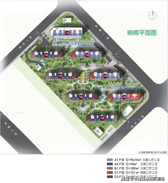 【大名城·映玥】此次推出主力户型为建面约84-96㎡(3房)的洋房,1梯2户私密设计,容积率低至约1.2,建筑密度约21.65%,车位配比1:1.1。