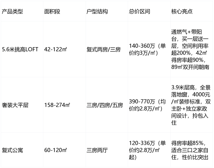 价格优势:LOFT单价约3万/㎡,大平层均价约2.8万/㎡,周边同地段住宅房价约5-5.5万/㎡,性价比突出
