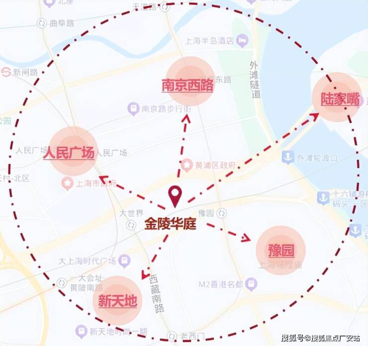 2公里内括淮海路、新天地、人民广场、外滩、陆家嘴等城市级CBD。