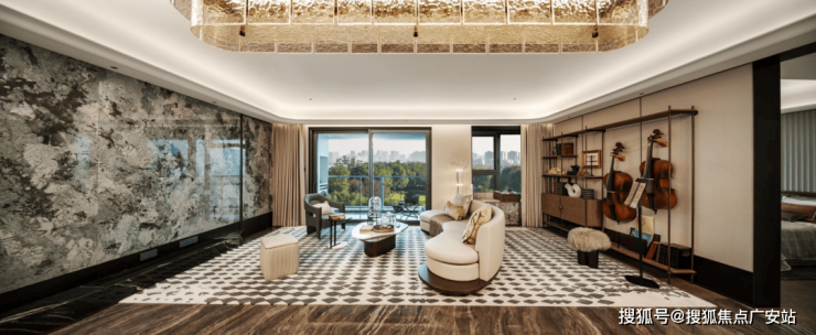 翎翠滨江通过大量的奢石、隐藏式细节将整个室内打造成了艺术的殿堂。