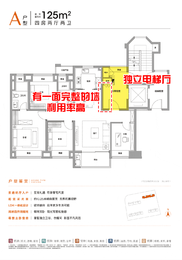 类一梯一户和入户玄关,让生活质感提升;LDK一体化设计使得整体通透而明亮,让客、餐、厨空间打破传统布局中的“隔阂”,几个功能区独立又互通,为生活预留更多惊喜空间。 U型厨房,全景移门对空间的利用加大,功能分区明确。川字型主卧套房设计,约3.8米面宽,空间布局从容大气,独立卫浴、衣帽间层层递进,将舒适、私密相结合,采光性与通透性兼备,亦坐拥明朗视野。